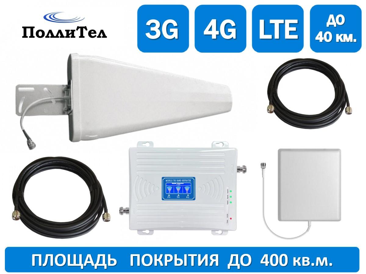 Универсальный трехдиапазонный усилитель сигнала "ПОЛЛИТЕЛ-900/1800/2100", с площадью покрытия до 400 кв.м., обеспечивает уверенный прием сотовой связи в трех частотных диапазонах900/1800/2100 МГц, а так же мобильного интернета 4G (LTE1800/LTE2100) и 3G (900/2100) в местах, где сигнал неустойчив или отсутствует. Это полностью готовый к работе комплект, состоящий из внешней широкополосной антенны, кабельных сборок, репитера 70 дБ с ЖК-дисплеем и внутренней панельной антенны. Данный усилитель сотовой связи, вы можете самостоятельно установить, а если возникнут сложности, просто свяжитесь с нашей службой техподдержки. Предназначен для усиления сигнала сотовой связи в помещениях на площади до 400 кв.м. следующих сотовых операторов: Мегафон, МТС, Билайн, Т2, Yota и др., работающих в диапазоне частот 900 МГц, 1800 МГц и 2100 МГц.